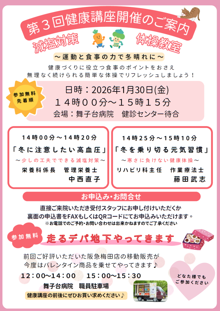 2026年1月30日(金)14時~15時15分 舞子台病院 健診センター待合にて行います!